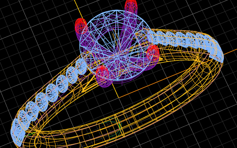 3D scanning allows us to accurately design a shaped wedding ring around any style of engagement ring. Photo quality renders are created using the latest CAD software for your approval before we proceed with the manufacture of your dream wedding ring.