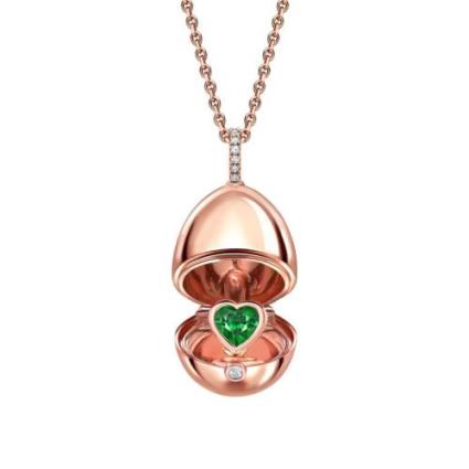 Faberge 18ct RG Essence Emerald Heart Surprise Egg Pendant on Chain