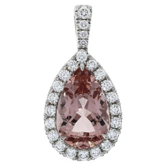 18ct White Gold Pear Cut Morganite 2.14ct and Diamond 0.29ct Cluster Pendant on Chain