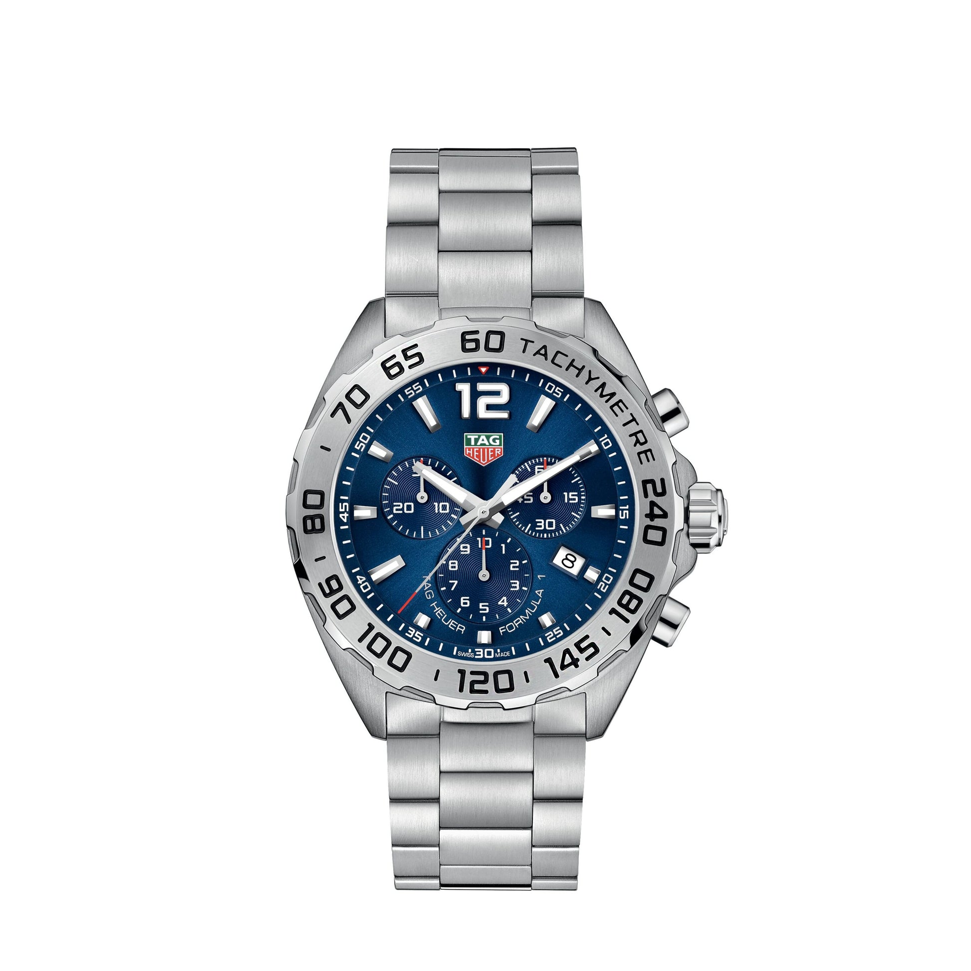 Gents Tag Heuer Formula 1 Quartz Chronograph Steel Bracelet and Case Blue Index Dial Date 200m