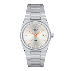 Tissot T Classic PRX Unisex 35mm Steel Caes and Bracelet Silver Dial with Rose Coloured Batons Date