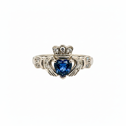 18ct White Gold Sapphire and Diamond Set Claddagh Ring
