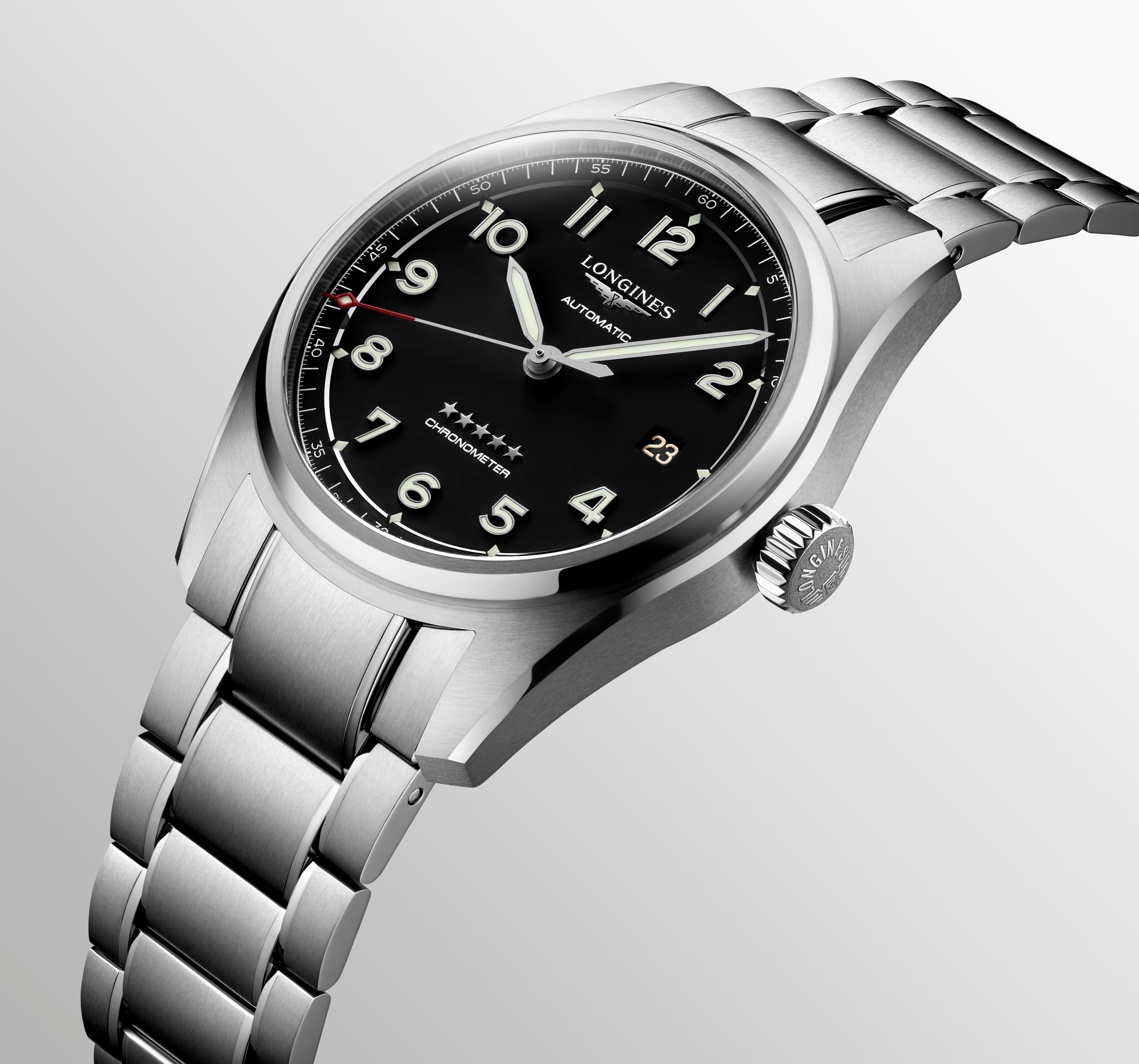 Gents Longines Spirit 40mm Automatic Steel Bracelet Black Arabic Numeral Dial Date