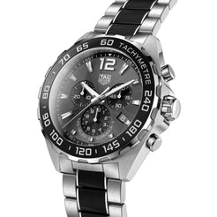 Gents Tag Heuer Formula 1 Quartz Chronograph Steel and Ceramic Bracelet Grey Dial Date 43mm