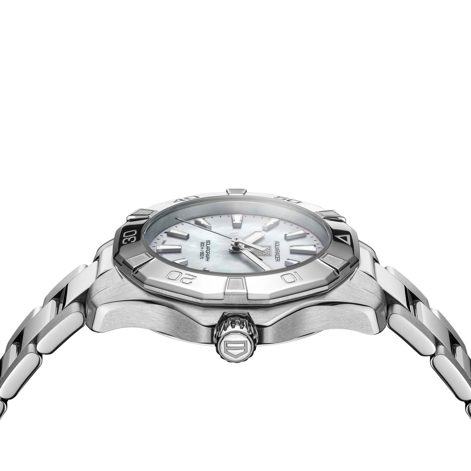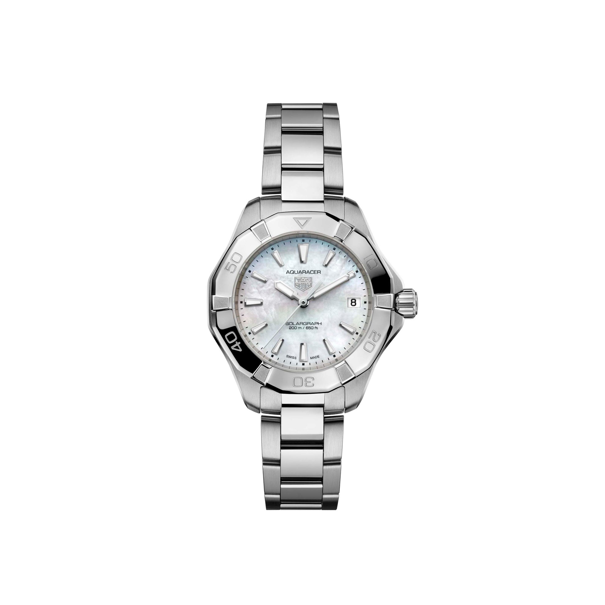 Immerse yourself in the celestial allure of the northern lights with this TAG Heuer Aquaracer, equipped with our Solargraph movement. Designed as an elegant yet resilient timepiece for the modern explorer, this sumptuous 34 mm watch is your go-to companion for rugged adventures and urban sophistication.
