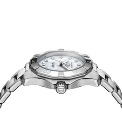 Elevate your elegance with this TAG Heuer Aquaracer, a fusion of precious materials and robust functionality. Designed for the modern adventure-seeker, this 34 mm watch is your luxurious companion for every journey and equipped with our Solargraph movement.