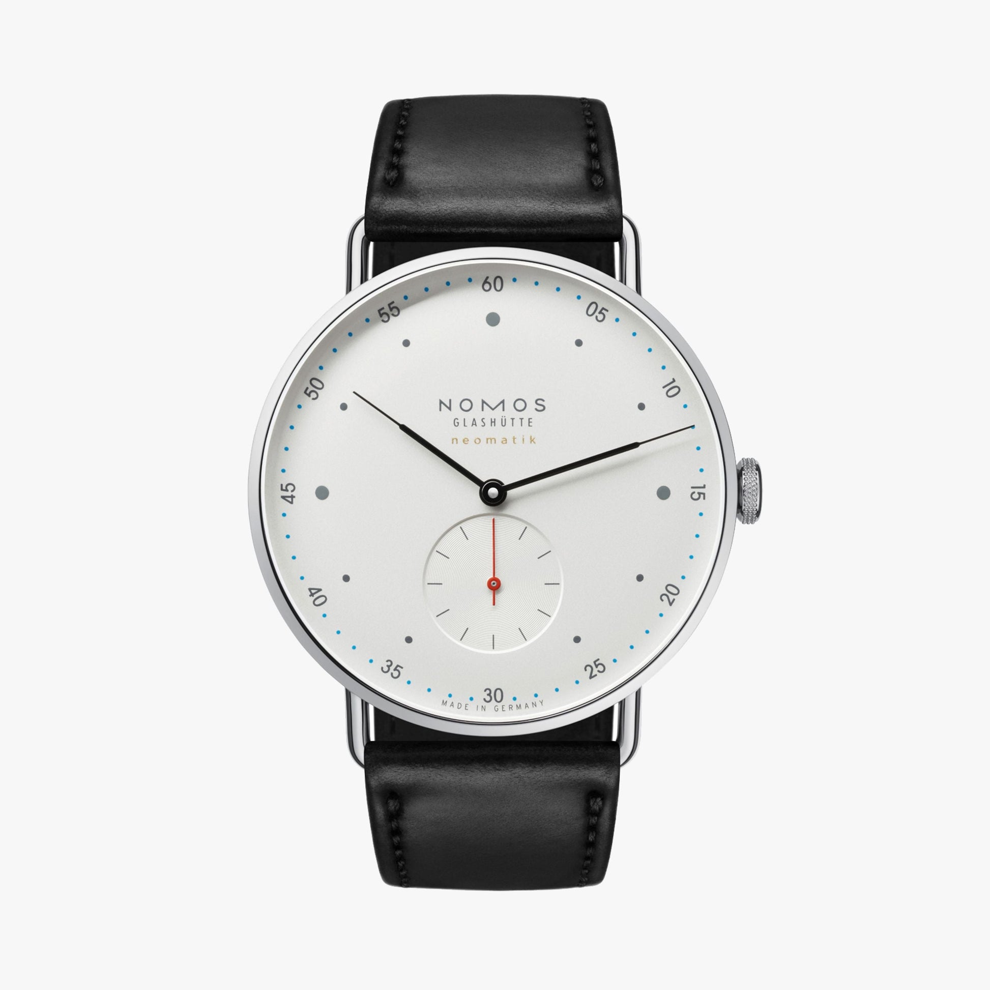 The modern NOMOS bestseller, designed by Mark Braun, large and automatic, while also as slender as a hand-wound watch. The proprietary NOMOS caliber DUW 3001, a masterpiece of German engineering, is what makes it possiblemaximum precision at a height of only 3.2 millimeters. The Metro design remains stylish and timeless; classic, cosmopolitan, and cool.