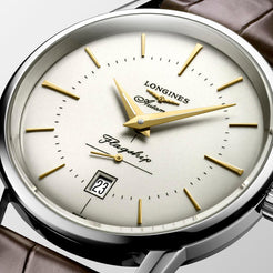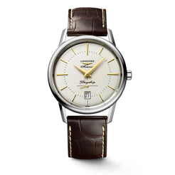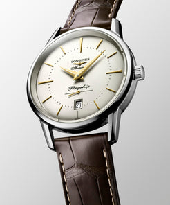 Gents Longines Heritage Flagship Automatic Brown Alligator Strap Steel Case Ivory Baton Dial Date