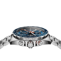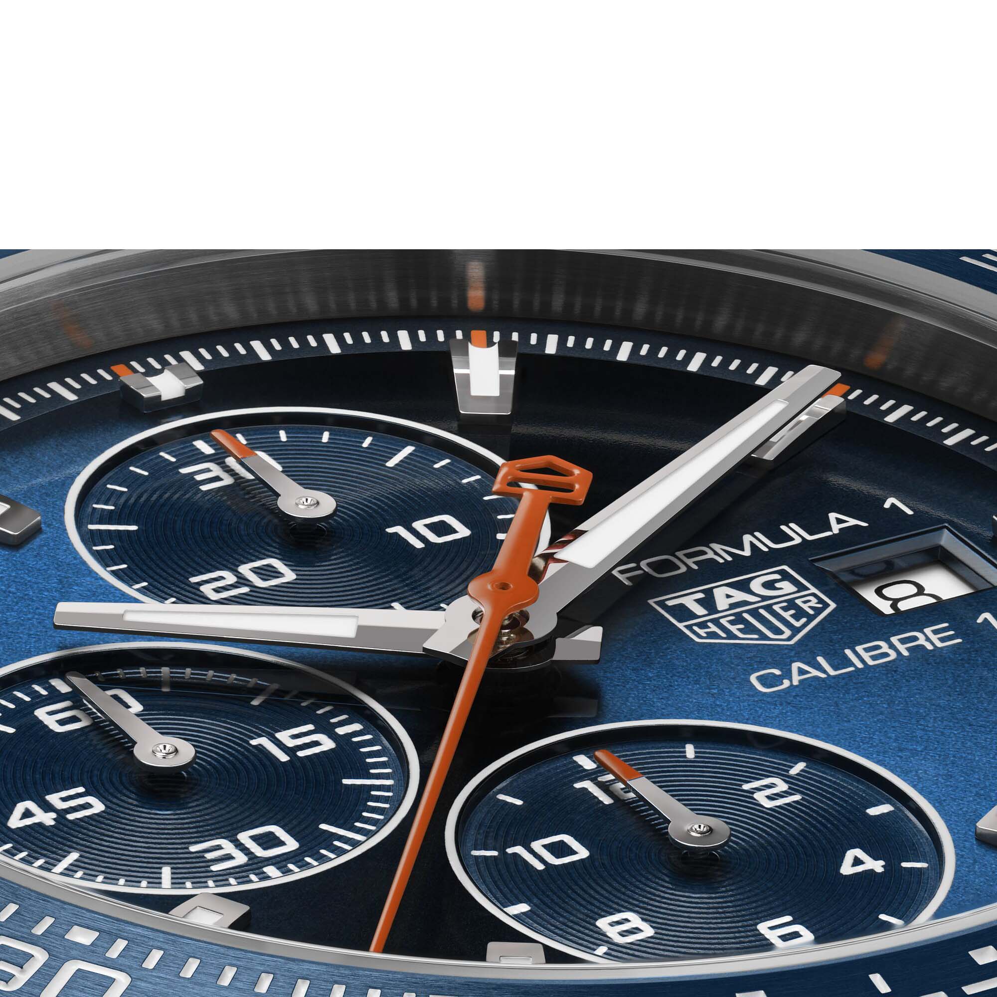 For gentleman drivers craving elegance with a sporty edge, this TAG Heuer Formula 1 chronograph is your go-to timepiece. Distilling an energetic look with its vivid orange highlights, this 44 mm watch is the perfect match for speed lovers.