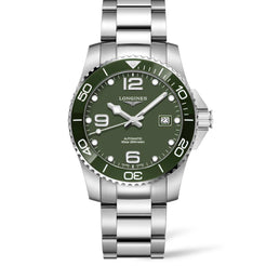 Gents Longines Hydro Conquest Automatic 41mm Steel Bracelet Green Bezel and Dial Date 300m