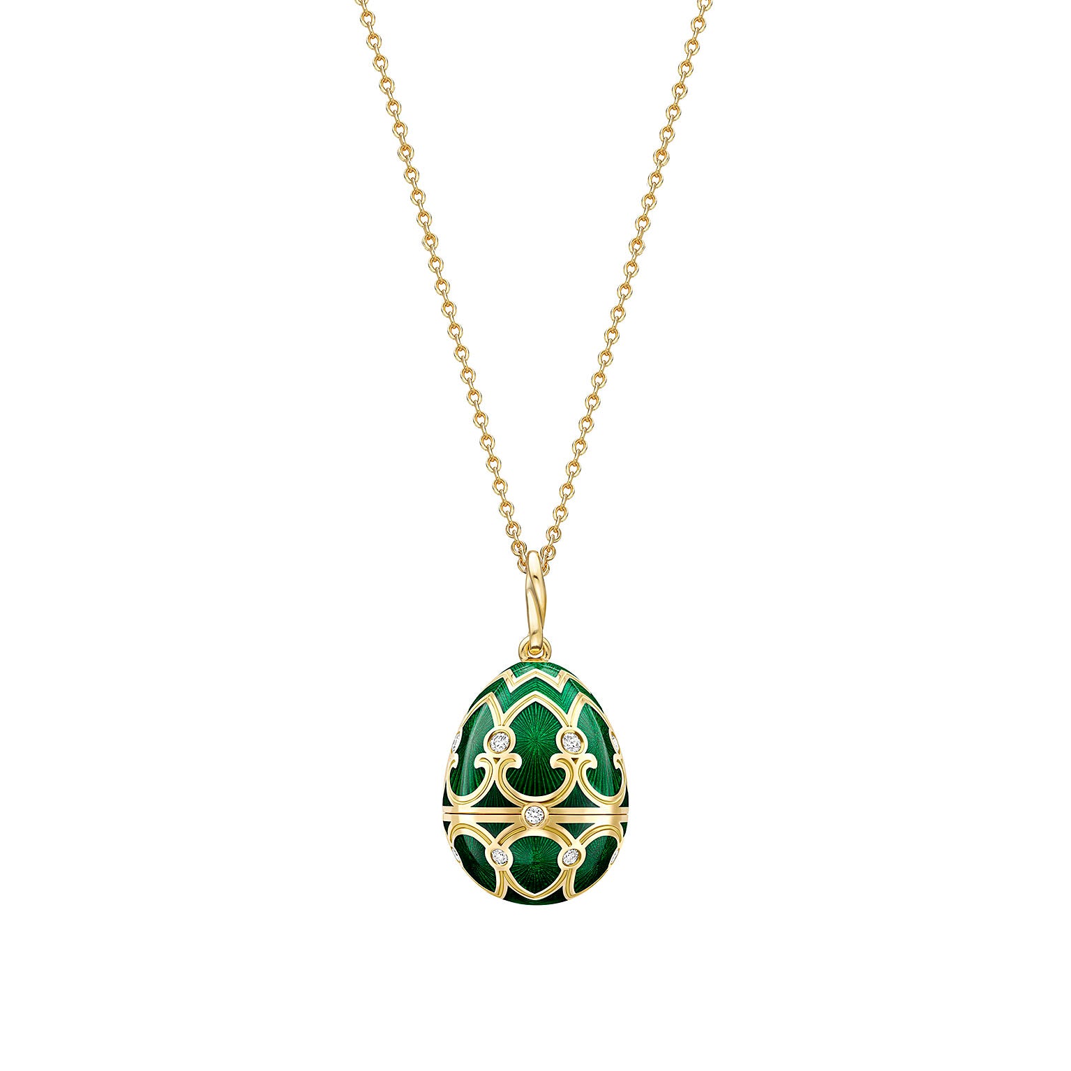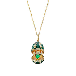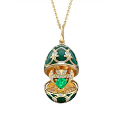 Faberge 18ct YG Heritage Diamond Guilloché Enamel Emerald Heart Claddagh Surprise Locket