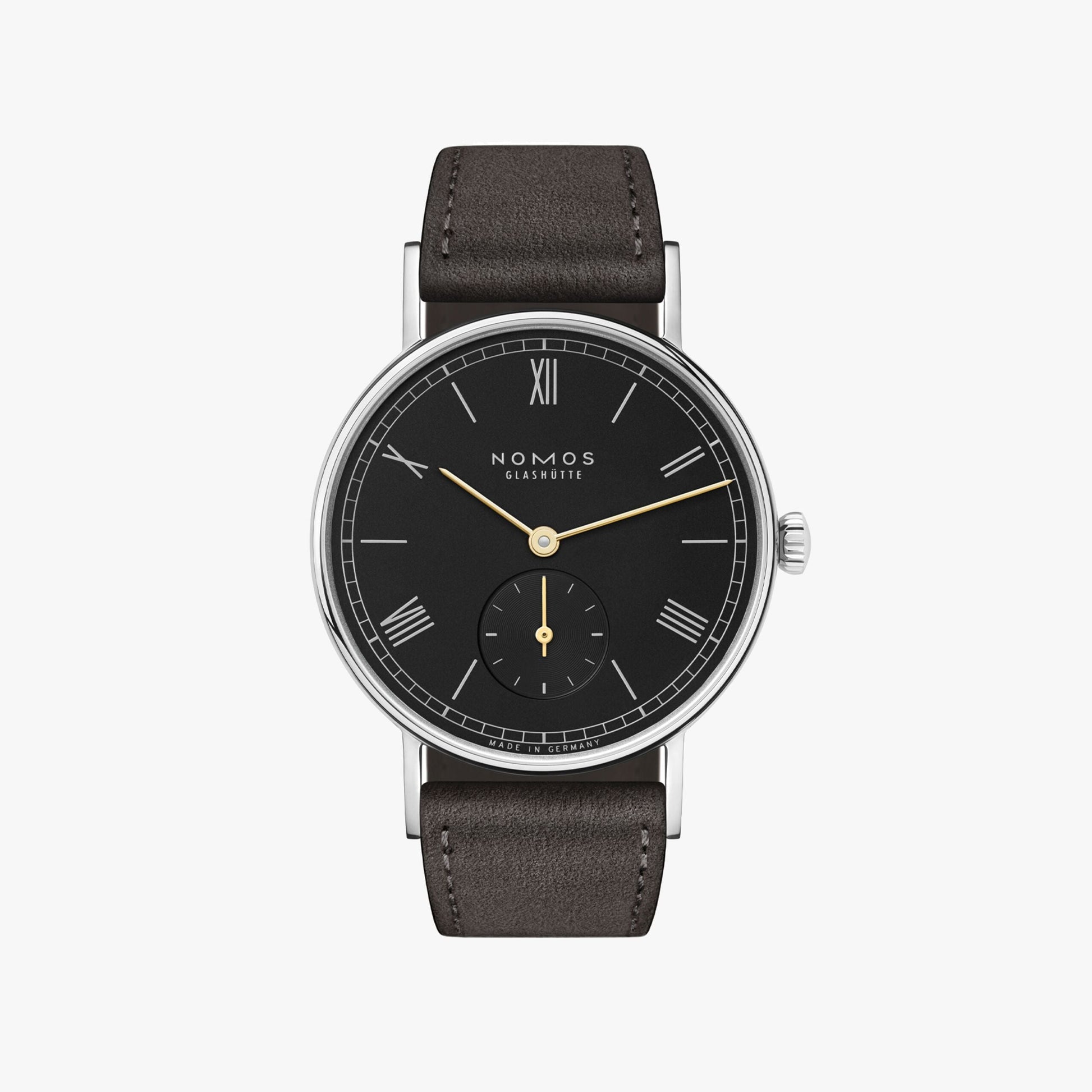 Golden hands on a black dial, a pleasantly rounded case and slender bezel with a diameter of 33 millimeters fastened by an anthracite velour leather strapthis model from the classic Ludwig series ensures you look your best, wherever you are. Ludwig 33 noir is the little black watch from NOMOS. This timepiece is powered by the high-precision, hand-wound Alpha movement, whose slender construction is quite simply astonishing.