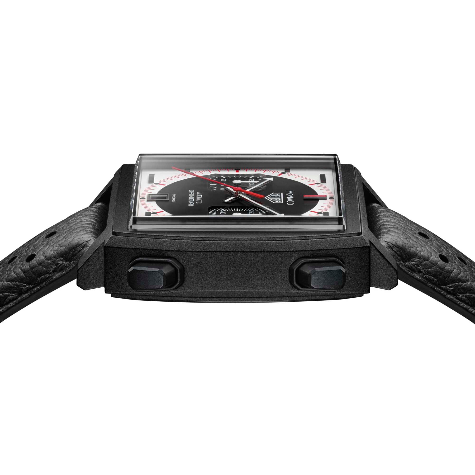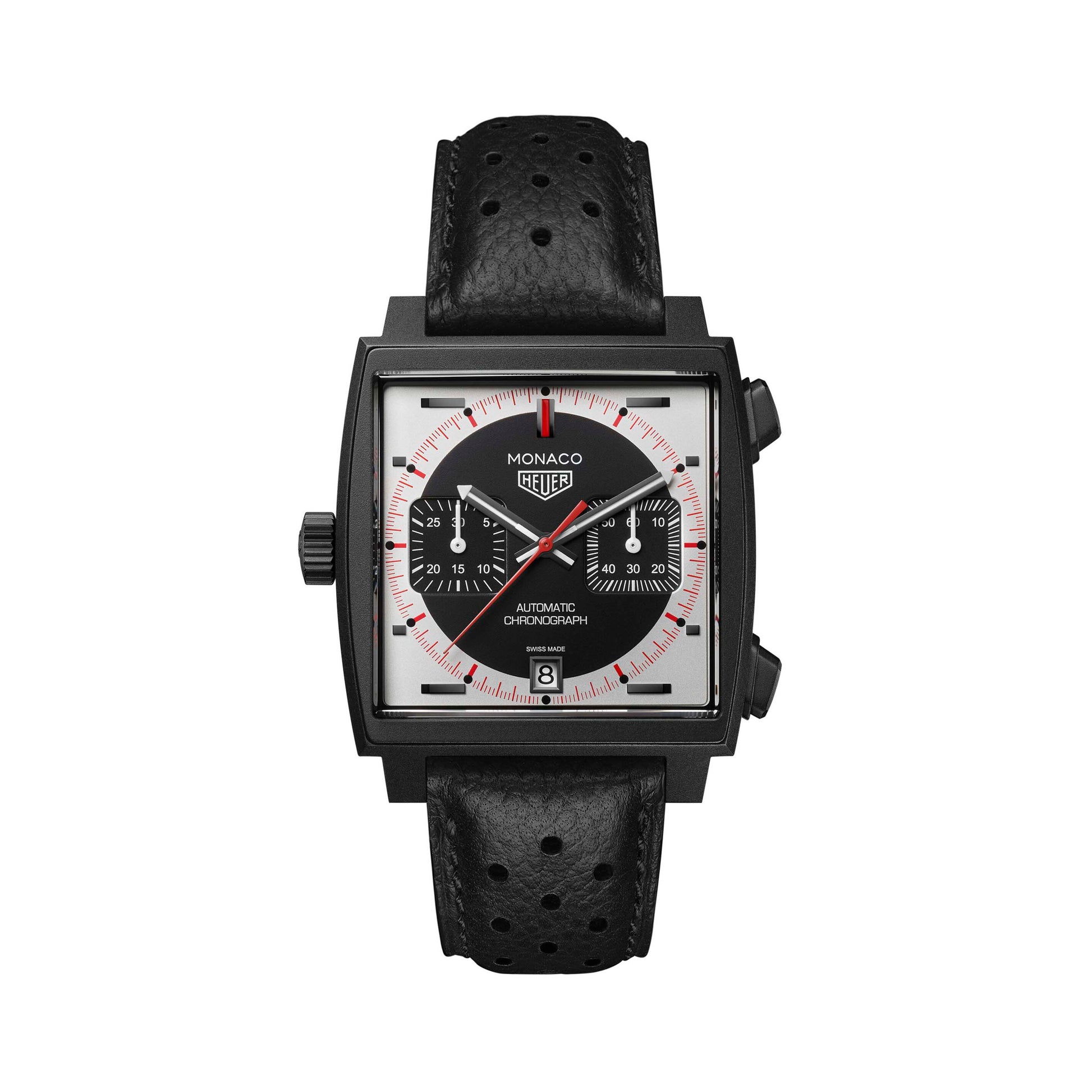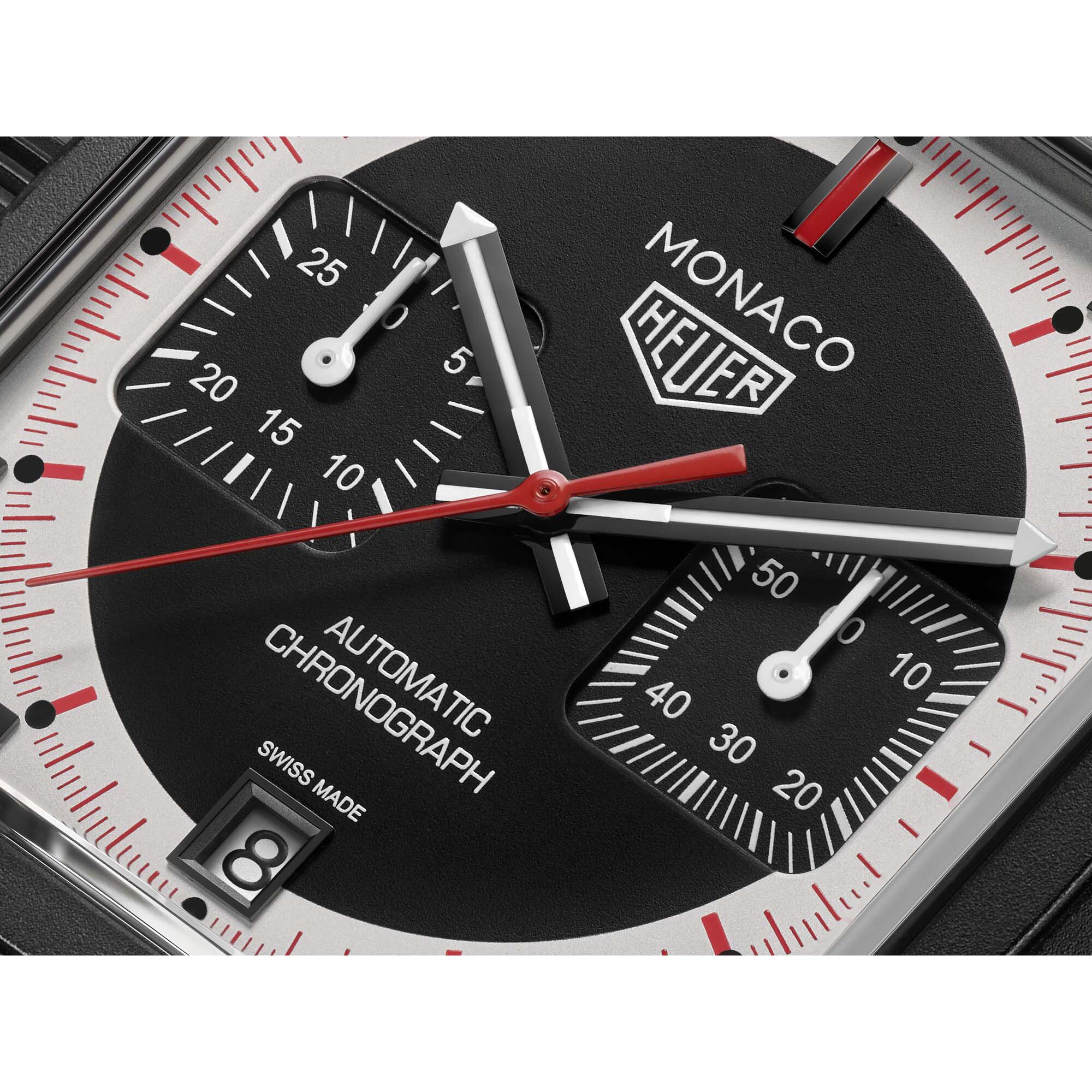 Inspired by emblematic Heuer stopwatches from the 1960s and 1970s, the new TAG Heuer Monaco Chronograph Stopwatch channels original design codes with its black, white, and red color palette and the same high-contrast clarity that made Heuer stopwatches the ultimate timekeeping instruments on the racetrack.