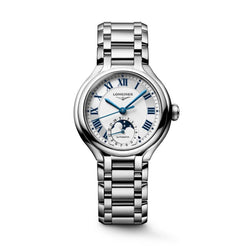 Ladies Longines Prima Luna 34mm Quartz Moonphase Steel Bracelet