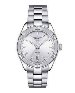 Ladies Tissot PR100 Sport Chic Steel Bracelet and Case silver Baton Dial Date 23.3mm