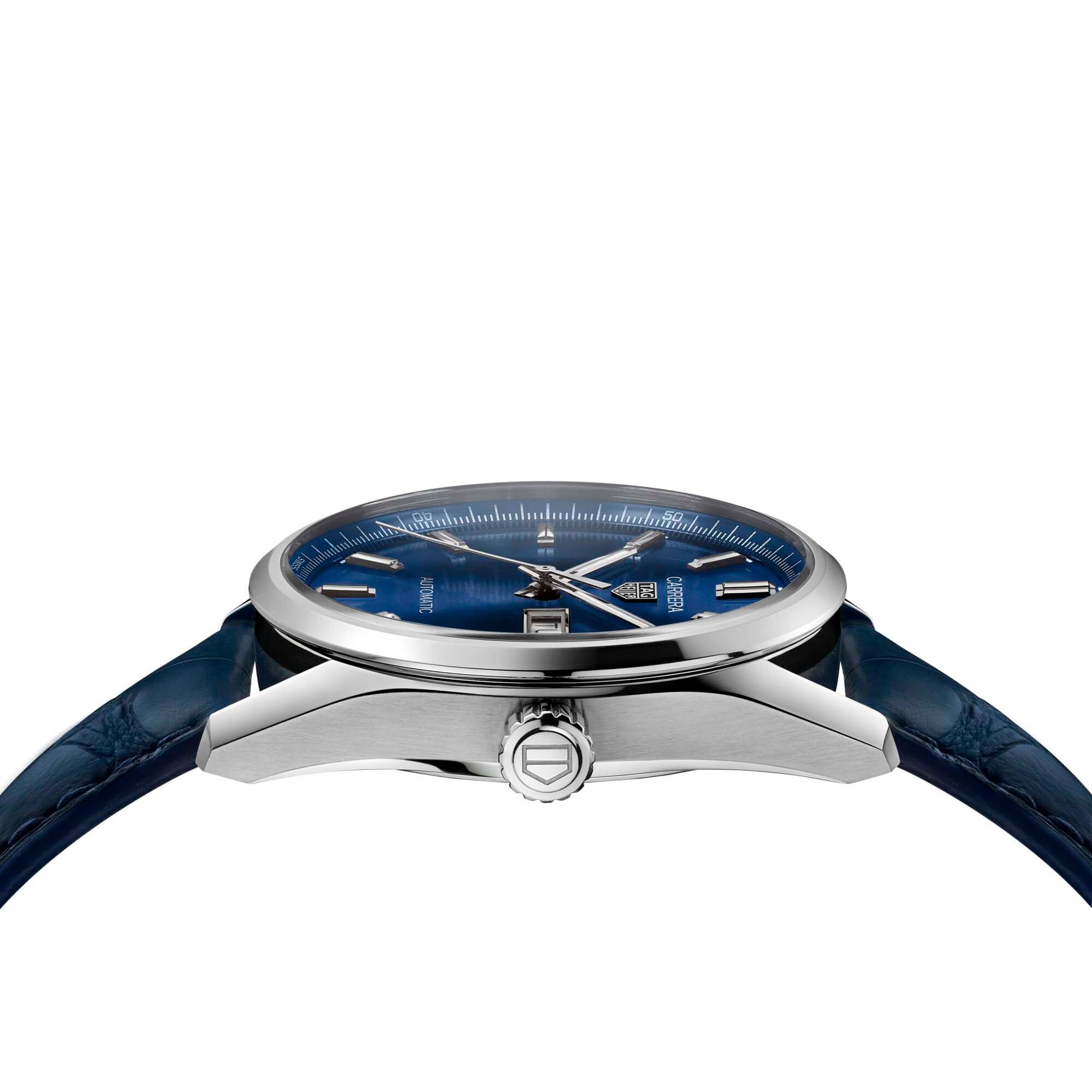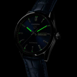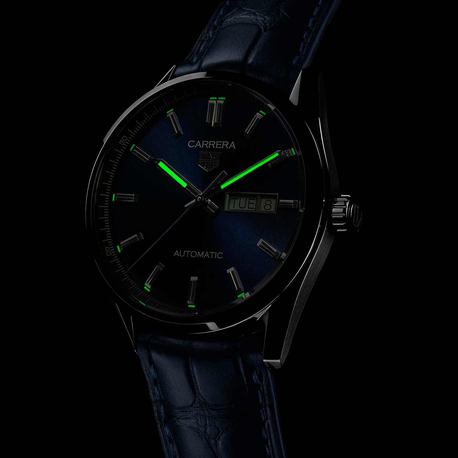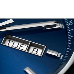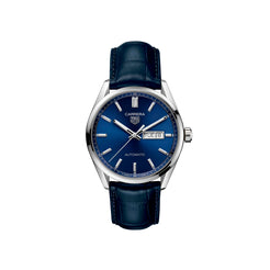 Make a statement with the chic blue sunray brushed dial of this TAG Heuer Carrera. Daring and ready to perform, the 41mm steel case proudly highlights the TAG Heuer Carrera’s signature design, and is water-resistant to 100 meters. Perfect for city dwellers, the Calibre 5 Automatic powers the TAG Heuer Carrera, with a day-date display offering additional performance. A sapphire crystal with double anti-reflective coatings protects the dial, and Super-LumiNova® filled hands and markers ensure precision timekeeping.