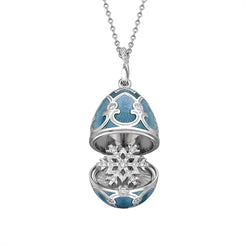 Faberge 18ct WG Heritage Diamond & Teal Guilloche Enamel Snowflake Surprise Egg Pendant on Chain