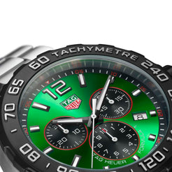 Bold in spirit, striking in design. Adorned with a radiant green dial, this energetic TAG Heuer Formula 1 watch pays a daring tribute to the fearless challengers of the racetrack. Marrying strength and versatility, it stands as a testament to those who dare to outpace.