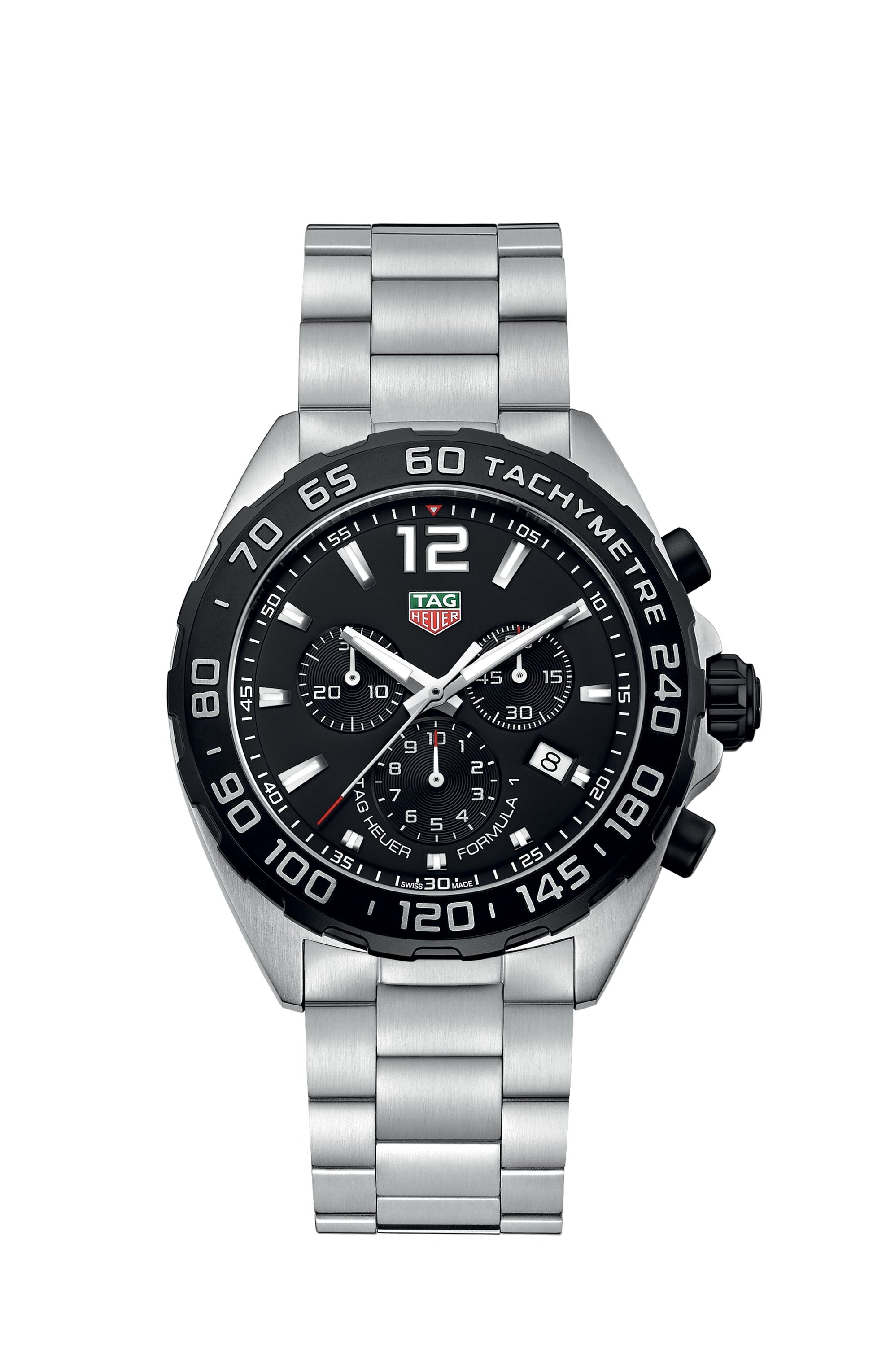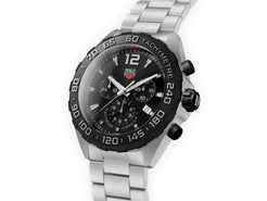 Gents Tag Formula 1 Quartz Chronograph 43mm Steel Bracelet Black Bezel and Dial Date 200m