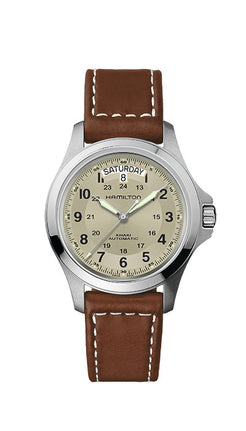 Gents Hamilton Khaki Field King Auto 40mm Brown Strap Beige Dial