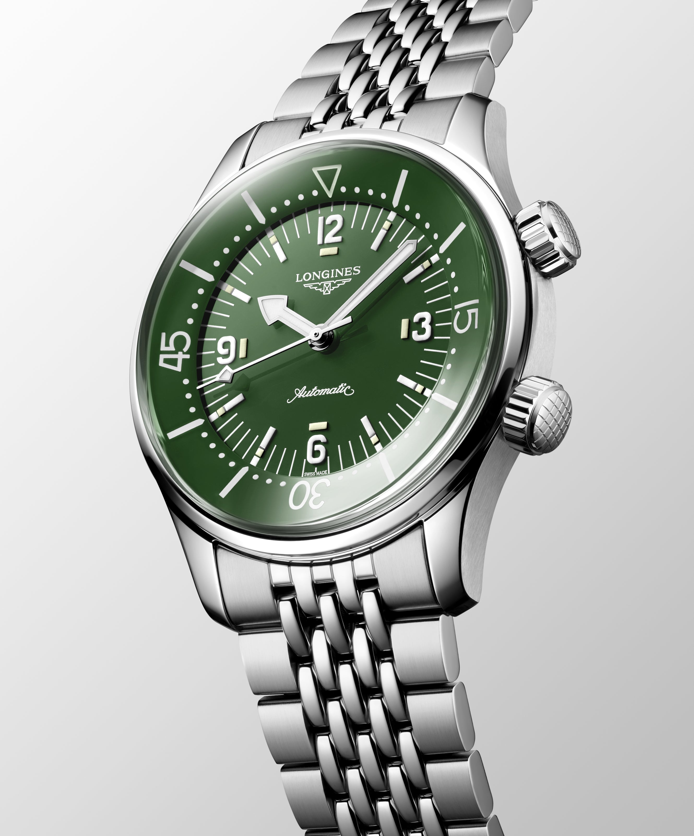 Gents Longines Legend Diver 39mm Steel Bracelet Green Dial