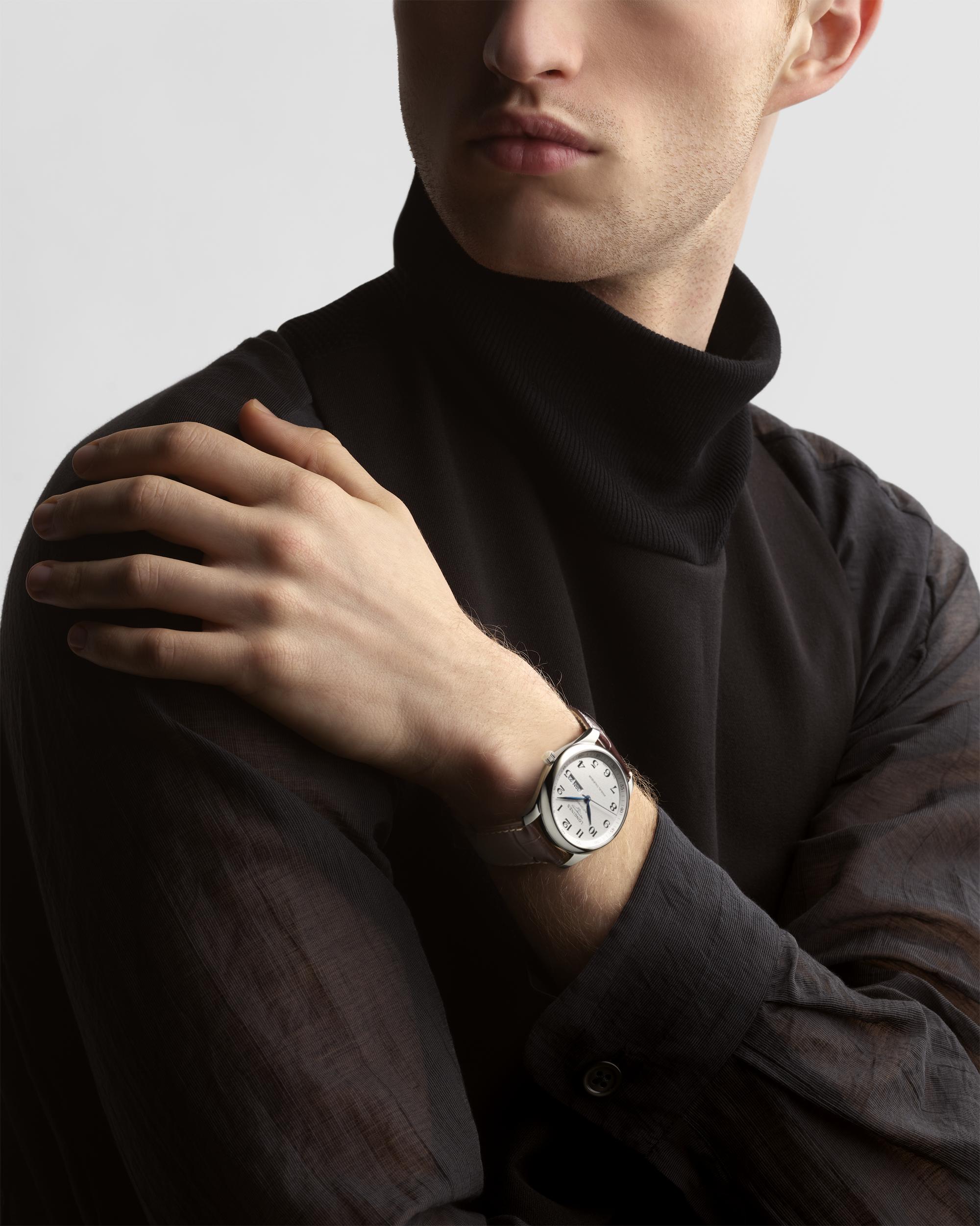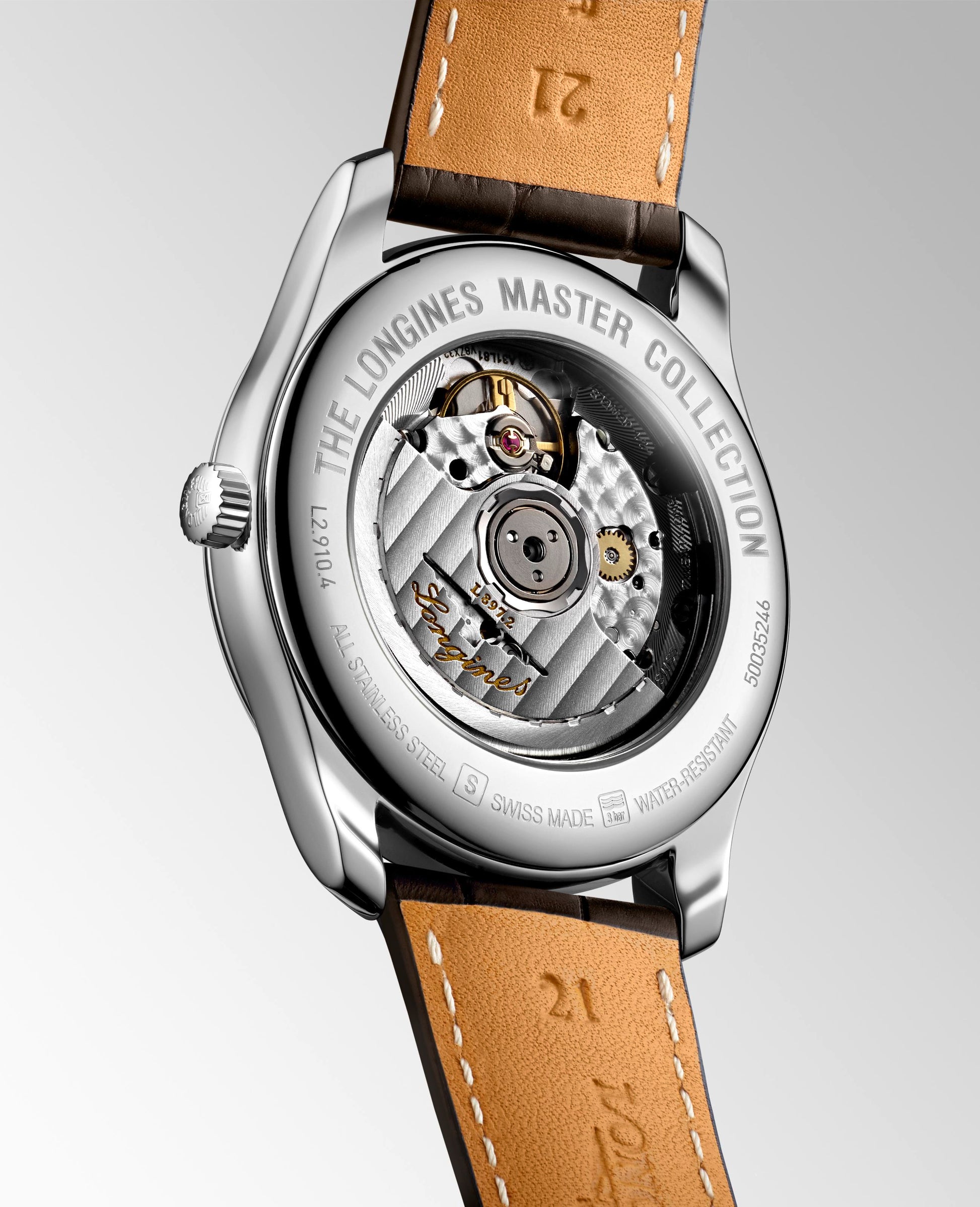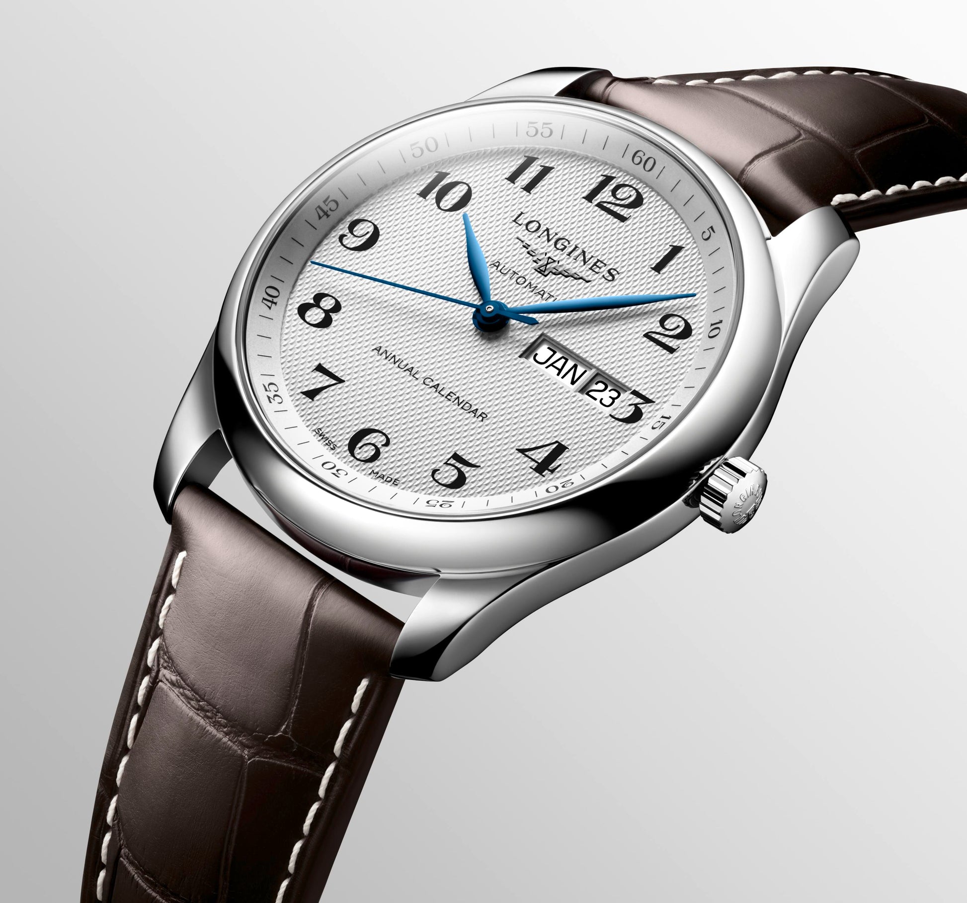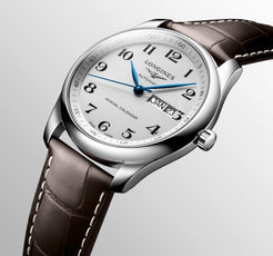 Gents Longines Master Collection Automatic Annual Calendar Silver Barlycorn Dial Steel 40mm Case Brown Strap
