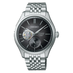 Gents Seiko Presage Auto 3 Days Open Heart Sumi-Iro Steel Black Dial