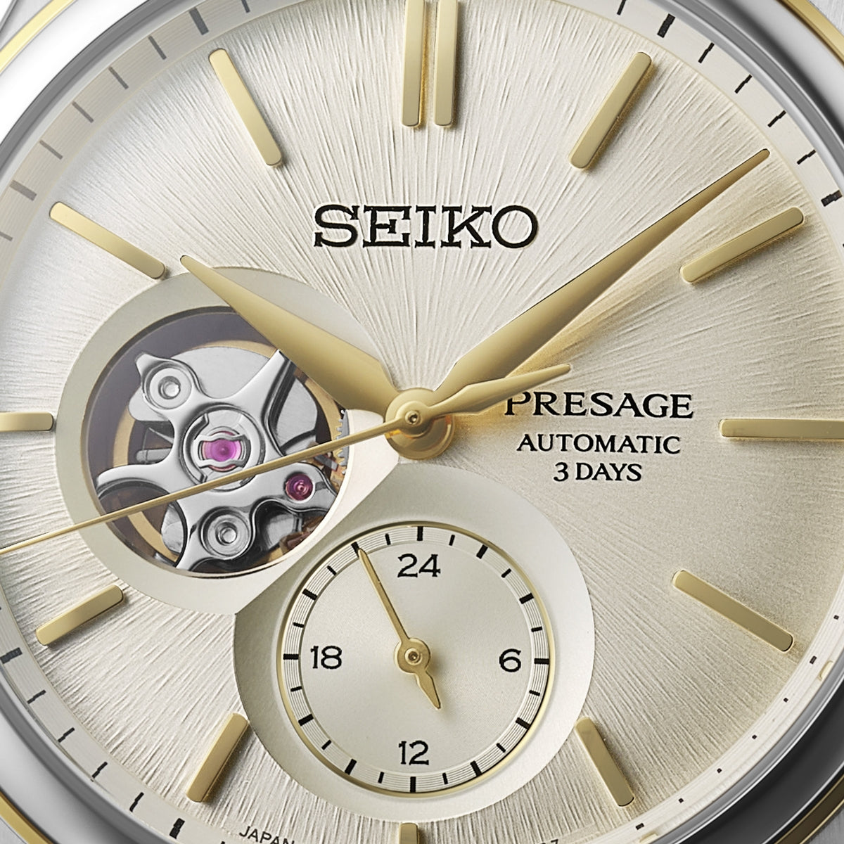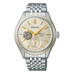 Gents Seiko Presage Auto Open Heart Bi Col Bracelet Cream Dial SPB480J1