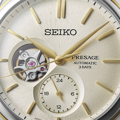 Gents Seiko Presage Auto Open Heart Bi Col Bracelet Cream Dial