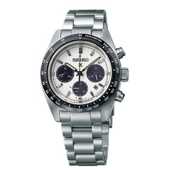 Gents Seiko Prospex Speedtimer Solar Chronograph Steel Bracelet White Dial Date