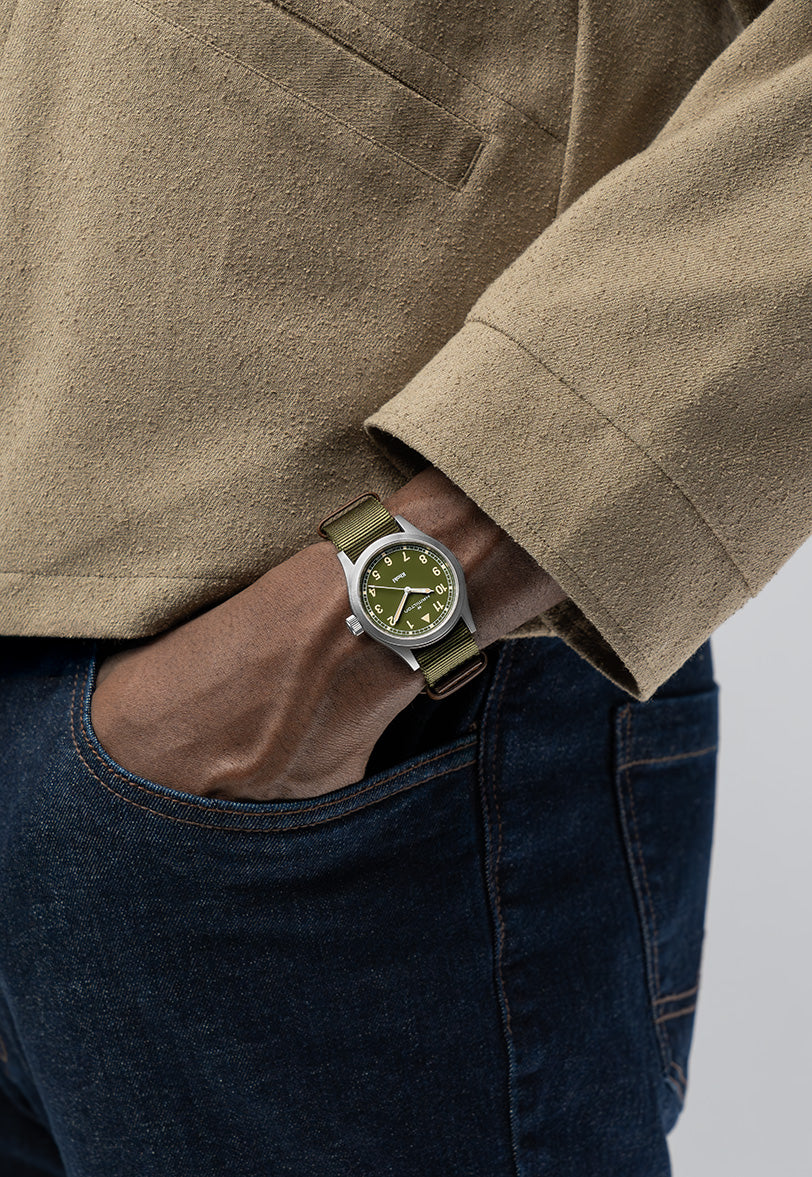 Hamilton Khaki Field 38mm Green Dial on Nato Strap Qua