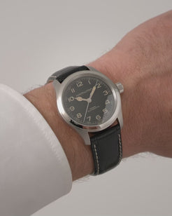 The Khaki Field Murph Auto 38mm is here. One of the science fiction's most famous watches known by fans as 'The Murph' is now housed in a compact 38mm stainless steel case. Featuring ultra-readable black dial, beige vintage-style Super-LumiNova® finished hands and black leather strap, it reflects the key aesthetic codes of its 42mm predecessor. Powered by the H-10 automatic movement boasting an 80-hour power reserve, this Khaki Field Murph Auto will capture the hearts of those who are in love with smaller watches.