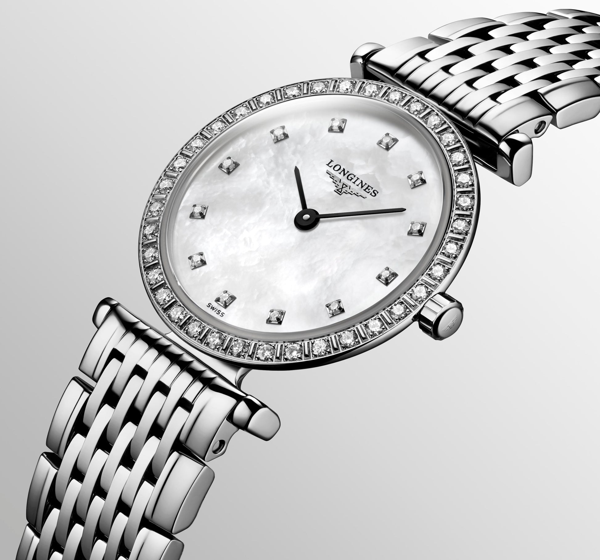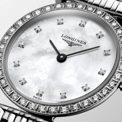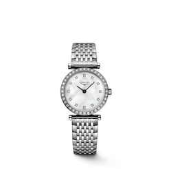 Ladies Longines La Grande Classique 24mm Steel Bracelet Diamond Set Bezel White Mother of Pearl Diamond Dial