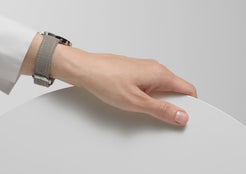 Some of the most important points on a city dweller’s to-do list can be found on this wine-red dial. The smallest of them are in an assertive pink—as is the second hand of Metro 33 muted red. The multi-award-winning mechanical watch designed by Mark Braun, shown here with manual winding, in stainless steel and with a smart diameter of just 33 millimeters. Because city life can be simply beautiful!