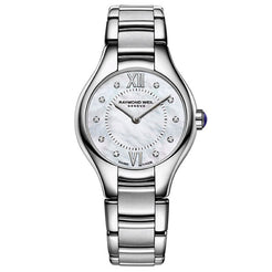 Named after the granddaughter of Mr. Raymond Weil, the noemia collection captures an elegance and timeless style with a touch of contemporary. This feminine timepiece fitted with a quartz movement, is available in 24, 32 or 36mm case to accommodate all wrist sizes. The gracefully formed horns of the bezel merge with the sleek stainless steel bracelet which includes polished and satin-finish links and display curved and rounded contours. This watch is great for everyday wear or special occasions and will impress a woman who appreciates beauty.