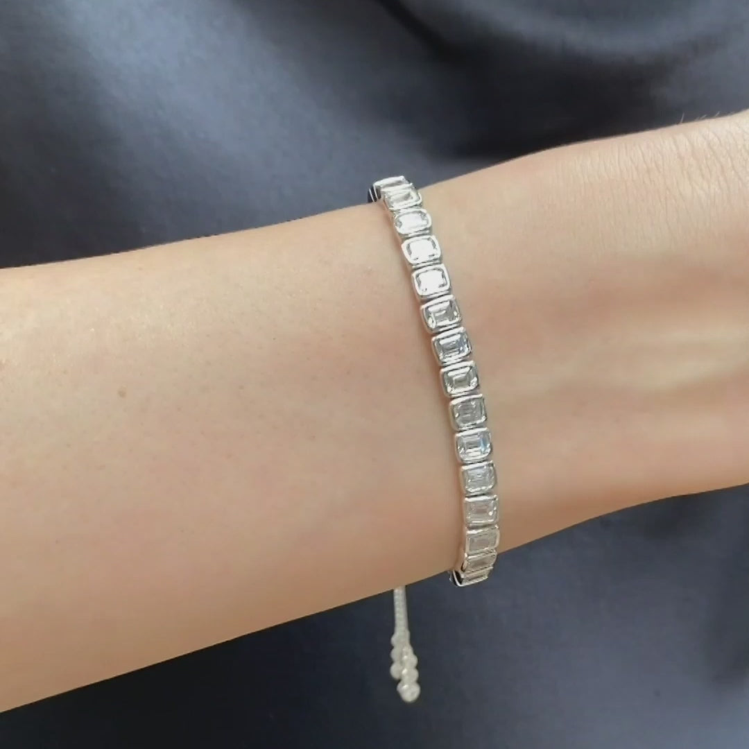 The Cassidy bracelet showcases beautiful bezel-set Emerald cuts in a tennis bracelet style. Wear solo or team with yo...