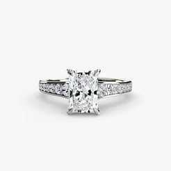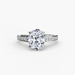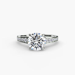 A timeless solitaire ring enhanced by a pavé-set band, combining classic elegance with a touch of sparkle for everyday luxury.