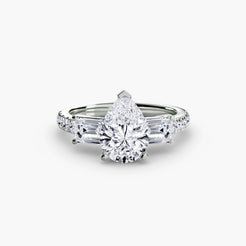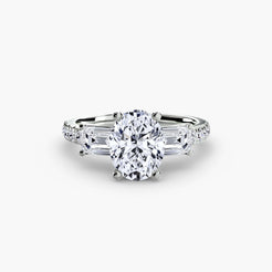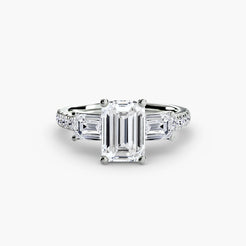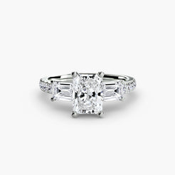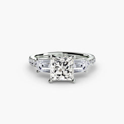 This elegant three-stone ring symbolizes your past, present, and future, elevated with a pavé band for extra sparkle and detail. A perfect union of meaning and brilliance.