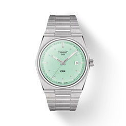 If you are looking for a slim, smooth watch with an authentic 70s feel, look no further than the PRX line. Created for those with an eye for design, the PRX brilliantly pairs twenty-first century features with a Tissot case shape from 1978. Discover this 40mm version with its mint green dial and stainless steel bracelet, for a trendy yet classy look.